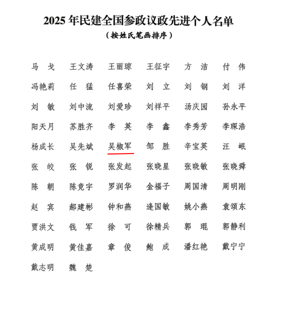 近日,民建中央下发《关于表彰2025年参政议政工作的决定》,对2025年参政议政工作有突出表现的单位和个人进行表彰。民建中央法制委员会副主任、安徽省人大常务委员会委员、民建安徽省委会副主委、合肥工业大学文法学院吴椒军教授荣获“2025年民建全国参政议政先进个人”称号。