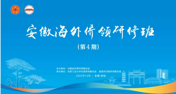 12月12日至16日,第4期安徽海外侨领研修班在宣城成功举办。省侨联党组书记、主席王汪苗,合肥工业大学党委副书记胡笑旋,宣城市委常委、统战部部长华银峰,合肥工业大学宣城校区党委副书记、管委会主任蒋传东分别出席了开班式和结业典礼,来自28个国家的41名海外侨领跨越山海齐聚宣城,共叙友谊、共话发展。
